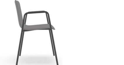 Sedia impilabile, scocca imbottita su telaio a 4 gambe con braccioli verniciato nero