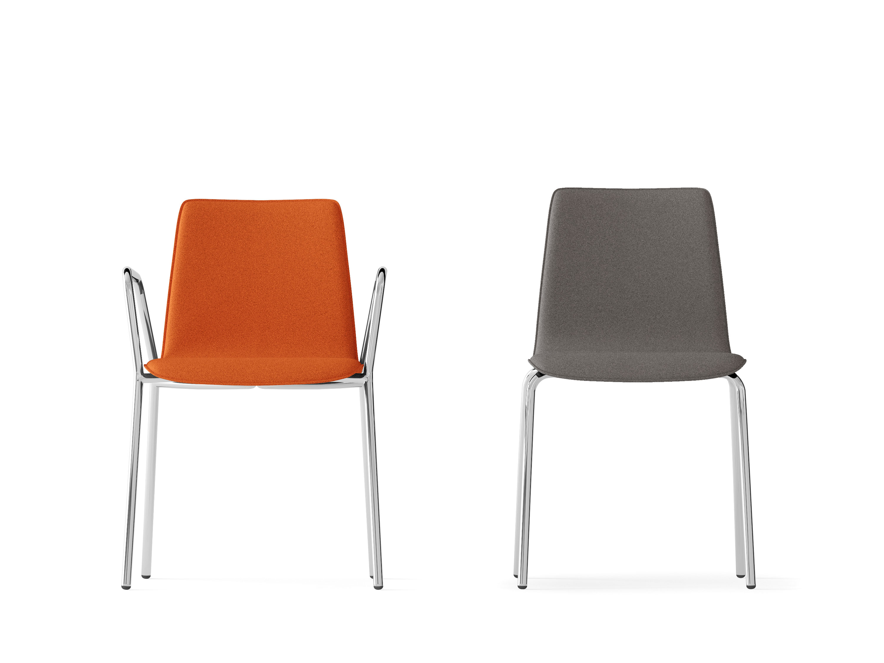 Sedia impilabile, scocca imbottita su telaio a 4 gambe con braccioli cromo