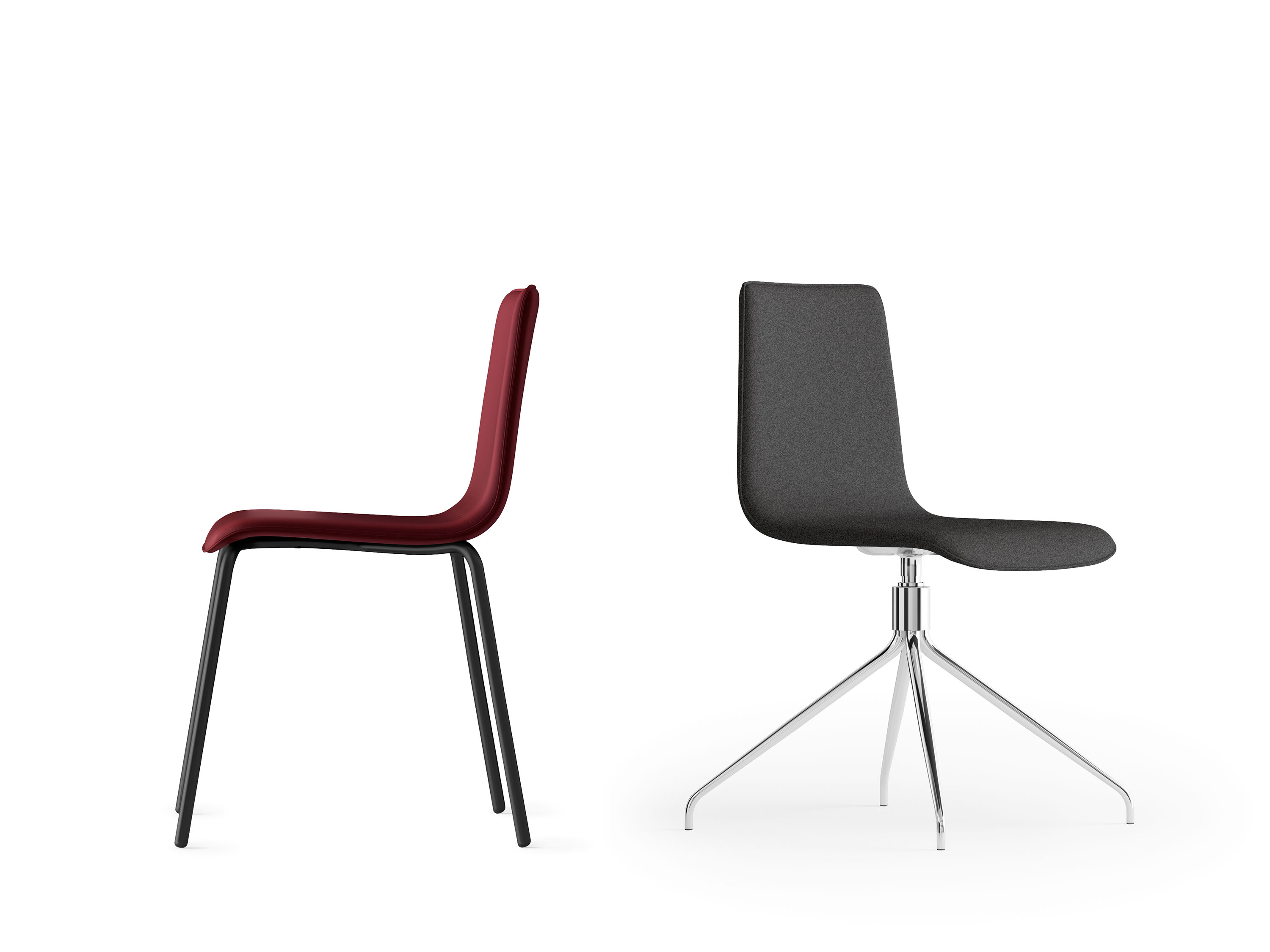 Sedia impilabile, scocca imbottita su telaio a 4 gambe cromo