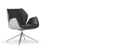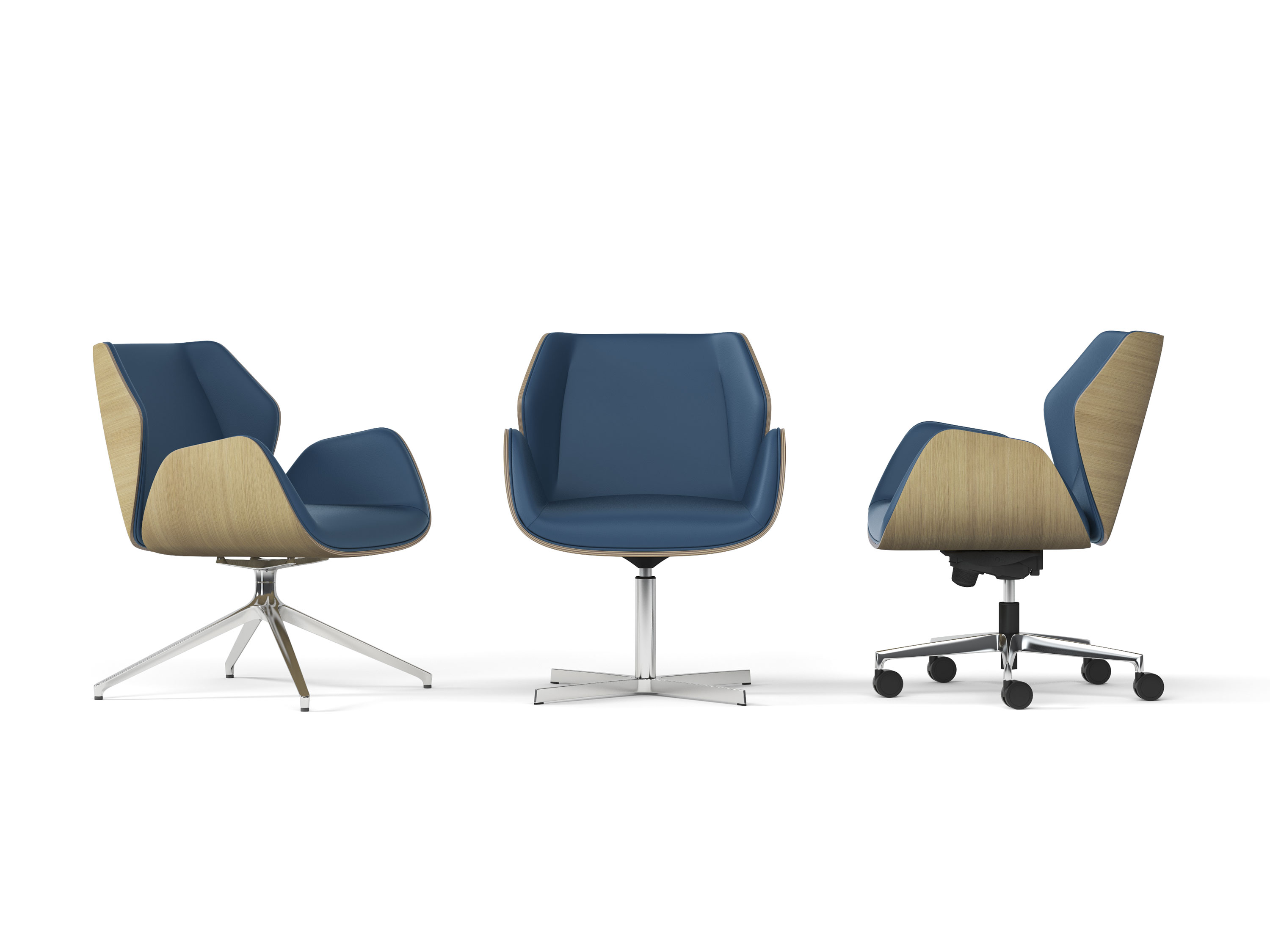 Mid back swivel armchair,natural polished oak wood shell, 4-legged pyramid aluminum aluminum base ø 840