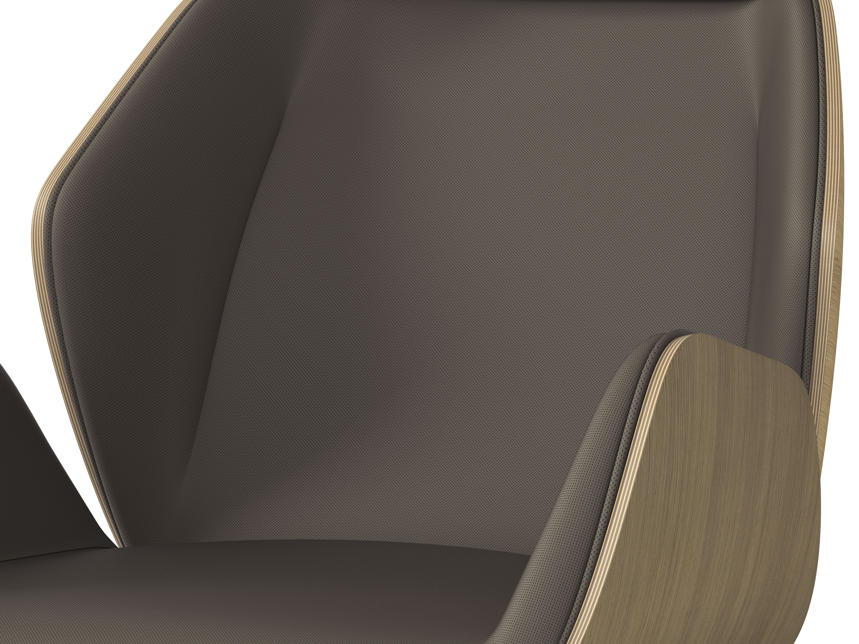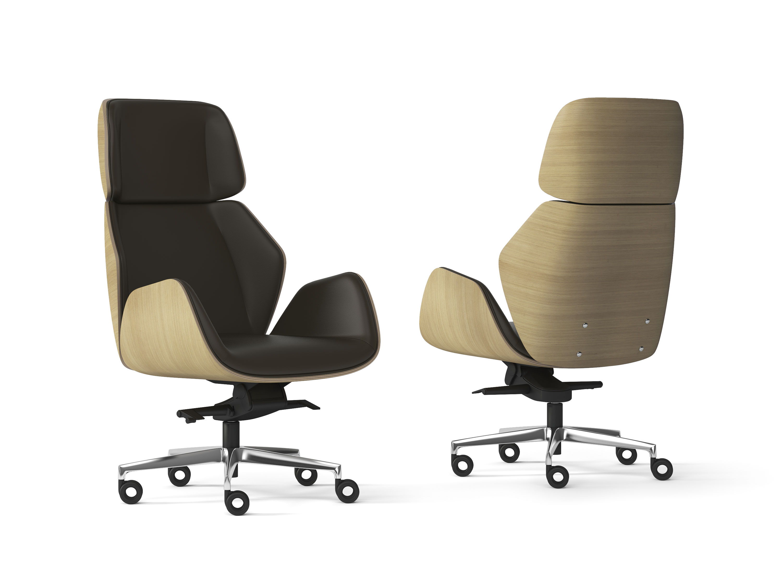 Executive armchair, natural polished oakwood shell, multiblock tilt, polished aluminum base