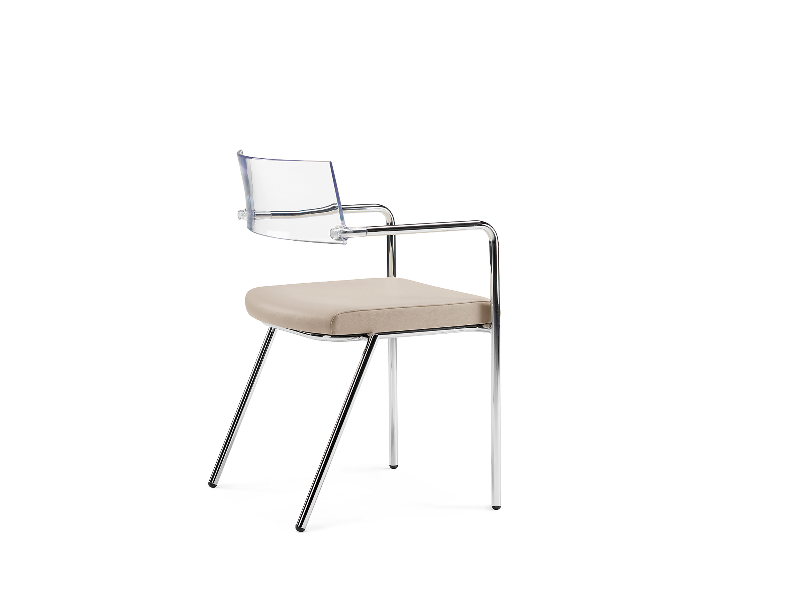 Sedia impilabile, sedile imbottito, schienale in policarbonato neutro, su telaio a slitta cromo